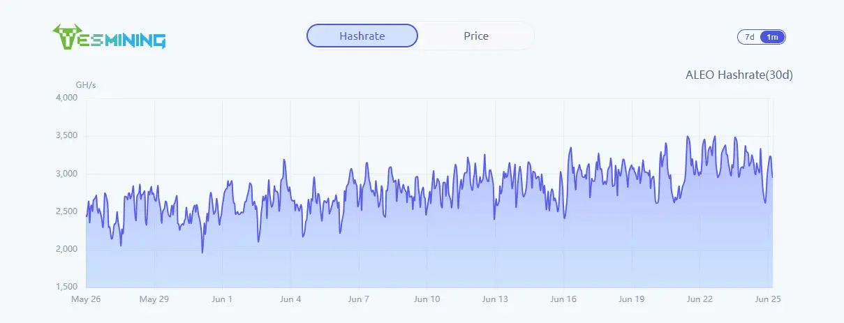 Im Krypto-Mining zeigt die Hashrate wie viel Rechenleistung Miner verwenden. Für Aleo, bedeutet eine höhere Hashrate bessere Sicherheit, aber auch schwierigere Mining-Bedingungen. Das macht das Erzielen von Belohnungen ohne gute Ausrüstung schwieriger.
