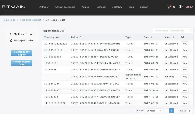 - ⚠ Third, the BITMAIN repair department must receive the defective product within 15 days after the creation of the ticket otherwise, if the product is received after the that period, the warranty period of the product cannot be fulfilled.