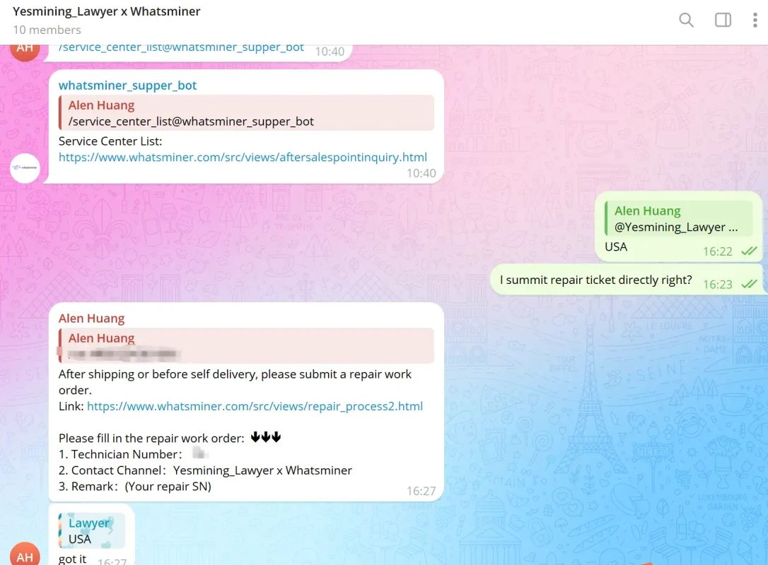 Telegram 1:https://t.me/Whatsminer_Aftersales (Repair consultation)