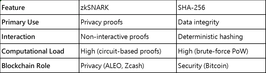 Назначениеe: Обеспечивает доказательства с нулевым разглашением, позволяя одной стороне доказать знание данных (например, закрытого ключа), не раскрывая сами данные. Используется в АЛЕО для транзакций, сохраняющих конфиденциальность.